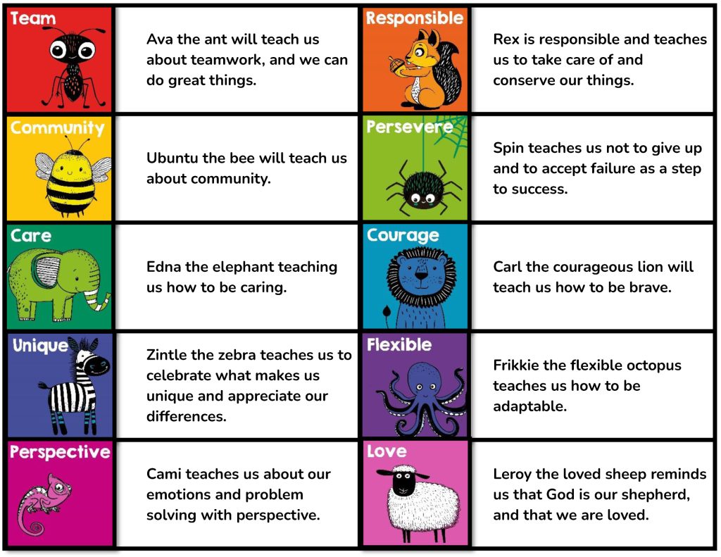 Wild animals are a wonderful starting point to make challenging concepts, simple and age appropriate and we look forward to our children reaping the rewards and to take these values and the emotional tools with them into adulthood.